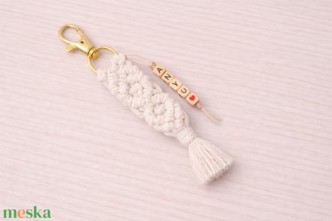 Makramé kulcstartó névvel– fehér