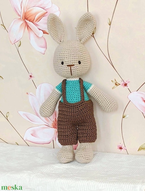 Nyuszi fiú - horgolt - barna nadrágban - horgolt nyuszi figura