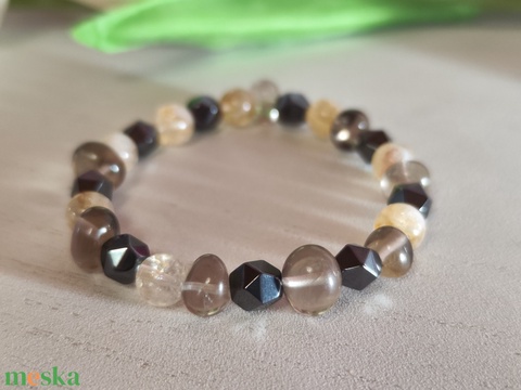 "Napfény a sziklák között" – Egyedi Füstkvarc, Citrin és Hematit Csillag karkötő
