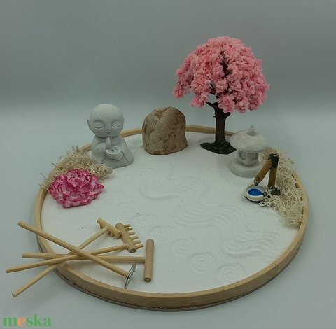 Japánkert (nagy)- virágzó fával, csobogóval, kőlámpással és Dzsizóval