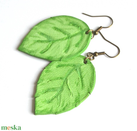Levélke-fülbevaló valódi bőrből