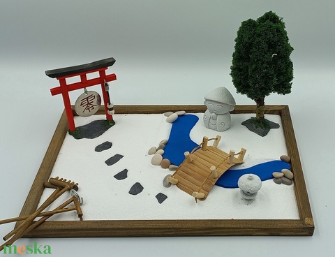Japánkert (nagy)- gongos torii kapuval, Dzsizó szerzetessel, patakkal, híddal és fával