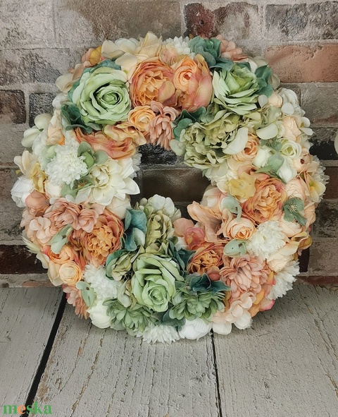 - Anyag/Összetevő selyemvirágok, szalmakoszorú