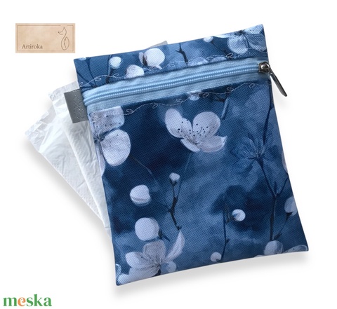 Cseresznyefavirág mintás, farmerkék színű egészségügyi betét tartó - Artiroka