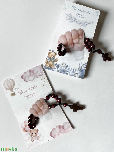 Keresztelő rózsafüzér ajándék - névvel, dátummal