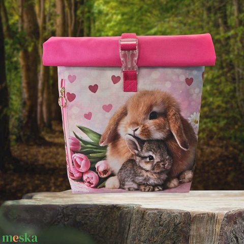 Rózsaszín-pink nyuszis roll-top hátizsák