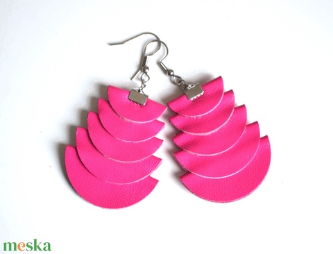 Azték istennő-pink-fülbevaló valódi bőrből