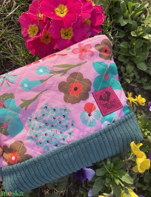 Steppelt, virágos pipere táska - rózsaszín/petrolkék kord/rózsaszín fül
