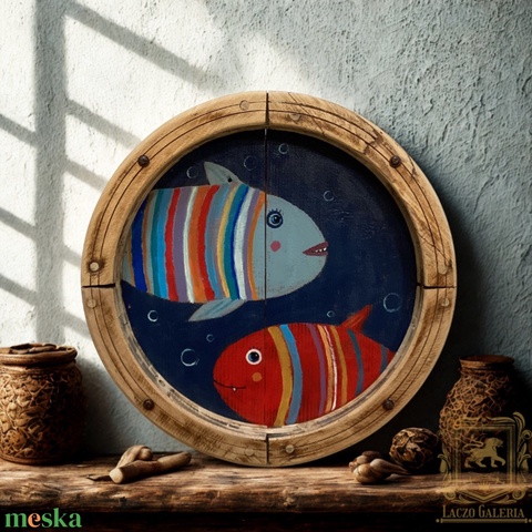 Boldog halacskák - Ajándék ötlet, Falikép, Dekoráció, Hal, Gyerekszoba, Hajóablak