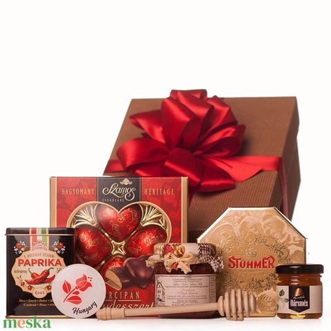 - Anyag/Összetevő díszcsomagolás, étcsokoládé, fűszerpaprika, marcipán praliné, hűtőmágnes, kézműves lekvár, mézcsurgató, desszert