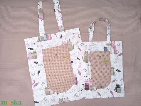 Anya-Lánya vászon szatyor cicás mintával . Összecsomagolható pénztárca formára.