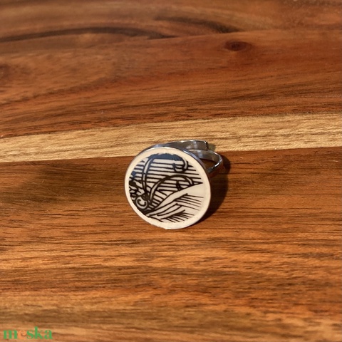 Mentett porcelán darabok - nemesacél gyűrű, állítható