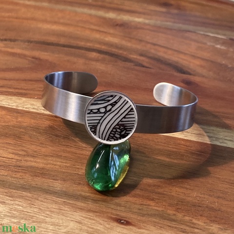 Mentett porcelán darabok - nemesacél karperec - állítható, grafikus