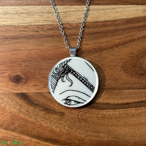 Mentett porcelán darabok - NŐI arc, szem medálos nyaklánc - nemesacél