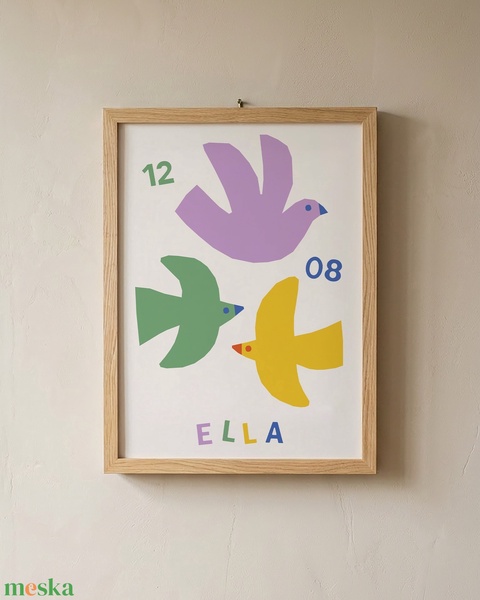 Ezt az egyedi és letisztult madárkás rajzot azért készítettem, hogy bármilyen gyerekszobát feldíszíthess vele. Hiszem, hogy a művészettel nem csupán dekorálni de inspirálni és történetet mesélni is lehet.