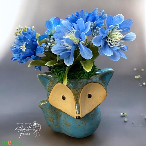Kék virág kompozíció róka kaspóban