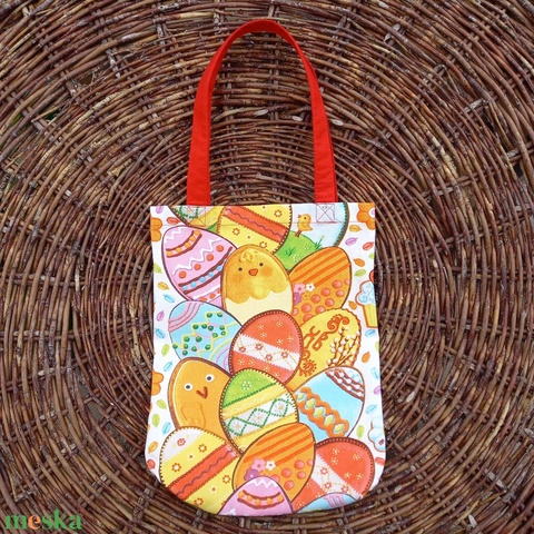 Színes húsvéti textiltáska piros füllel, 24x31 cm