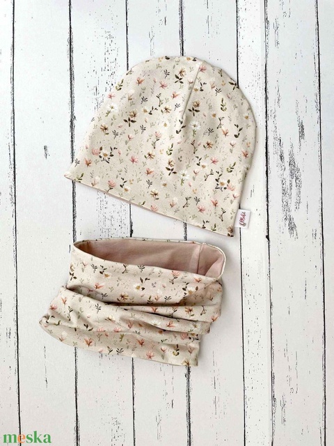 Virágos sapka-sál szett (50-52 cm)