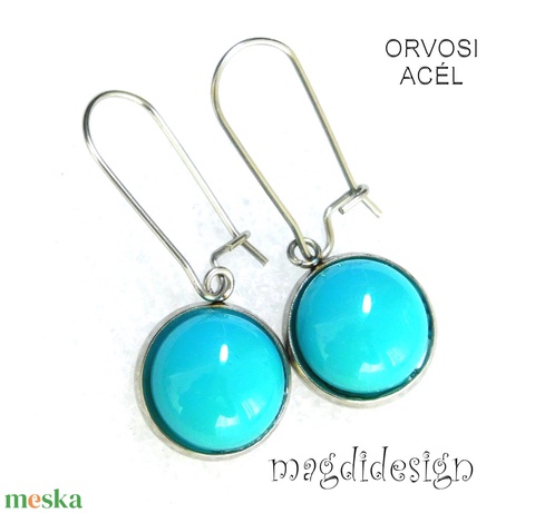 Türkizkéküvegékszer stiftes lógós nemesacél fülbevaló