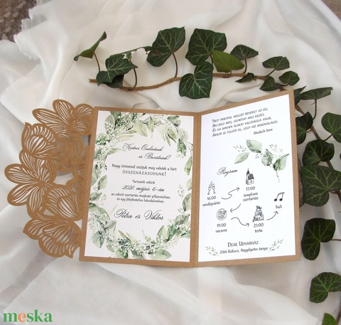 Lézervágott kraft esküvői meghívó