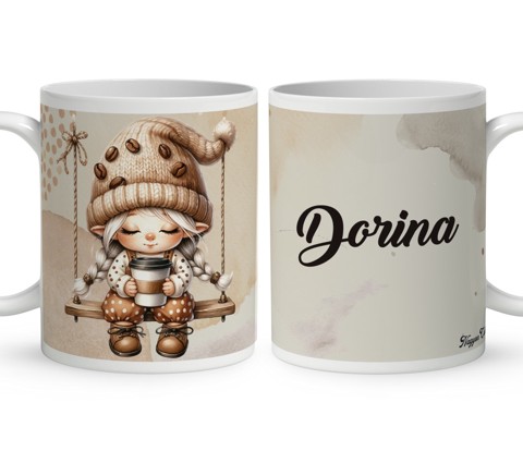 Névvel kérhető - Hintázó kávés manó lány mintás bögre | Egyedi Ajándék Kávéimádóknak és Teázóknak | nagyoncuki.hu Képzeld el azt a mosolyt a megajándékozott arcán, amikor egy olyan bögrét tart a kezében, amely nemcsak a kedvenc reggeli kávéjához vagy teájához nyújt társaságot, hanem a kávé és a meghitt pillanatok iránti szeretetét, a reggeli rituálék fontosságát is tükrözi! Ez a különleges, egyedi tervezésű kávés manó bögre a kényelem, a nyugalom és a tudatos kávézás bájos megtestesítője, egy apró, szeretetteljes gesztus, amely a mindennapokat is fénnyel tölti meg. Kiváló ajándék ötlet kávéimádóknak és mindenkinek, aki értékeli a lelki feltöltődést egy finom ital mellett. Ez a kávés bögre a belső békét, az egyensúlyt és a jelen pillanat megélésének örömét ötvözi egy aranyos, kávézó vagy épp kávéskancsóval tüsténkedő manó figurában. Ahogy a manó elmélyül a kávézás pillanatában vagy békésen szemlélődik, nyugalmat és pozitív energiákat sugároz. Legyen szó egy frissítő napindító kávéról vagy egy esti relaxáló teáról, ez a kávés mintás bögre tökéletes társ lesz. A dizájn kedves és egyedi, tökéletes ajándék ötlet kávérajongóknak és teázóknak, akik szeretik a különleges és szívhez szóló meglepetéseket. Ezt a bájos bögrét mi magunk, a nagyoncuki.hu csapata terveztük, így biztos lehetsz benne, hogy egy igazán egyedi és különleges kávés mintás ajándék darabbal leped meg szeretteidet vagy magadat! :)