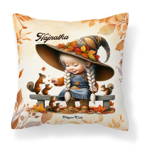Névvel kérhető - Őszi manó lány és a mókusok mintás különleges és egyedi párna | A tökéletes őszi ajándék nőknek és kislányoknak | nagyoncuki.hu Képzeld el a tökéletes pihenést egy hűvös őszi délutánon, egy puha, kényelmes párnán, amely ráadásul az évszak legszebb színeit és hangulatát hozza el otthonodba! Az őszi manó lány párnánk pontosan ilyen. Ez a különleges és egyedi párna tökéletes ajándék lehet mindenkinek, aki imádja az őszt.