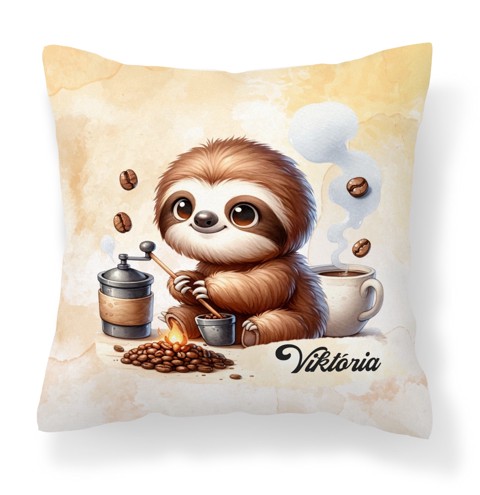 Vidd magaddal a ráérős reggelek és a lassú kávézás hangulatát ezzel a cuki, kávés lajhár mintás párnával! Tökéletes kiegészítő otthonodba, vagy szuper ajándék minden lajhár-rajongónak és a "slow living" híveinek, akik szerint a nap csak a kávé után kezdődik.