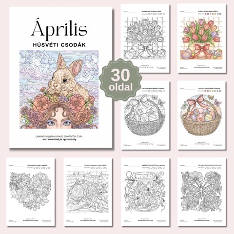 Áprilisi Húsvéti Csodák & Tavaszi Pillanatok – Nyomtatható léleksimogató színező kollekció (PDF) | Ajándék ötletek Nőknek | nagyoncuki.hu Ünnepelj és kapcsolódj ki az ébredező természet lágy ölelésében! Az áprilisi kollekciónk egy különleges elegyet alkot: a húsvét tündéri világát és a tavaszi természet legszebb pillanatait gyűjtöttük össze neked. Ezek a tündéri rajzok nem csupán színezők, hanem apró kapuk a belső békéhez, amik segítenek kikapcsolni a külvilág zaját. Legyen szó az ünnepi készülődésről vagy egy csendes tavaszi délutánról, ez a nyomtatható gyűjtemény a tökéletes választás számodra. Ez a kollekció kifejezetten a stílusos és lélekkel teli kikapcsolódást kedvelő hölgyeknek készült: egy igazi „én-idő” csomag nőknek, amely ötvözi a művészi grafikát a digitális kényelemmel.