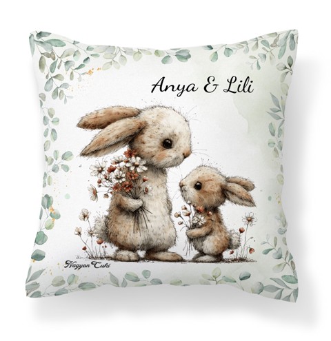 Névvel kérhető - Anya és a kicsi nyuszikája mintás párna | Névre Szóló Ajándék & Tavaszi otthon dekor | nagyoncuki.hu Gondoltál már arra, milyen csodálatos érzés a tavasz frissítő nyugalmát bevinni a négy fal közé? Kint már ébredeznek a rügyek, a melegedő napsugarak áttörik a téli szürkeséget, és a természet lassan felébred. Ezt a békés, reményteli és simogató tavaszi energiát zártuk bele ebbe a személyre szabható cuki párnába, az Erdei Varázs kollekció legpuhább darabjába. Ez a párna nem csupán egy szép lakástextil. Ez egy személyes üzenet és egy puha ölelés: "Pihenj meg egy kicsit a rohanásban, töltekezz fel, és élvezd a tavasz varázsát!" A borz kedves karaktere és a virágba boruló erdei környezet garancia arra, hogy ez a párna lesz a te (vagy a megajándékozott szeretted) új kedvenc helye a kanapén.
