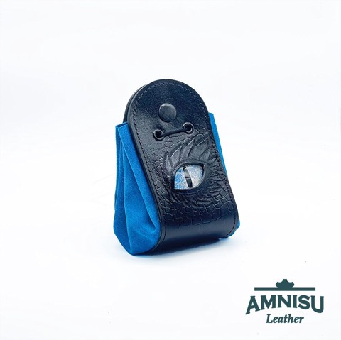 Fekete - világoskék sárkányszemes bőr 2in1 szütyő és kockatálca - Havier