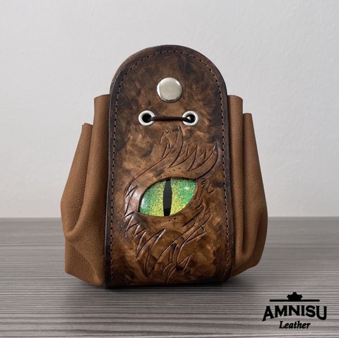 Barna - zöld sárkányszemes bőr 2in1 szütyő és kockatálca - Helena