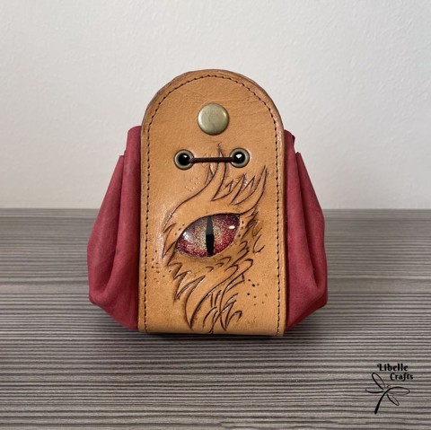 Antikolt bézs - gyűrt piros sárkányszemes bőr 2in1 szütyő és kockatálca - Rewa