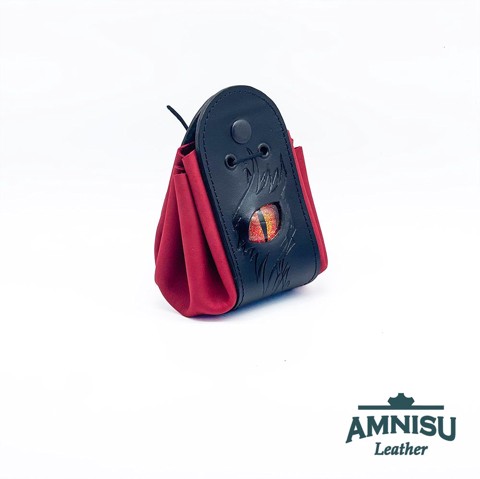 Fekete - piros sárkányszemes bőr 2in1 szütyő és kockatálca - Xena