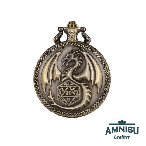 Bronz sárkány d20-al mini fém kockaszett zsebóra tokban