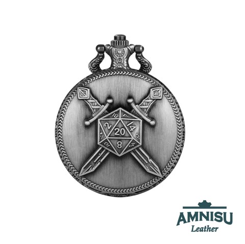 Ezüst d20 karddal mini fém kockaszett zsebóra tokban