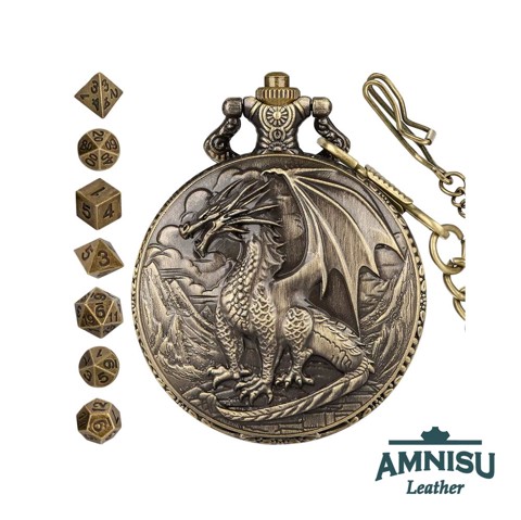 Bronz sárkányos mini fém kockaszett zsebóra tokban