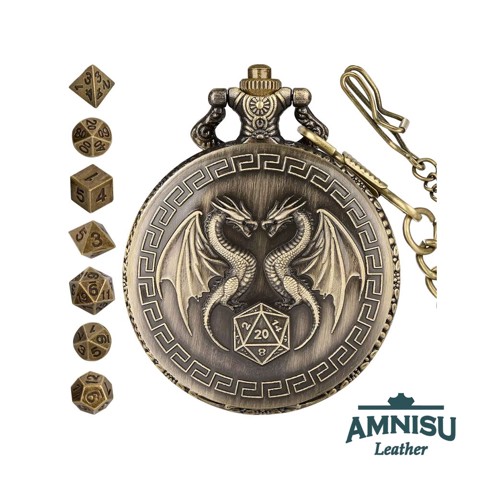 Bronz két sárkányos mini fém kockaszett zsebóra tokban