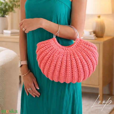 Luma horgolt női kosártáska – egyedi design, pamutfonal, különleges fogantyú