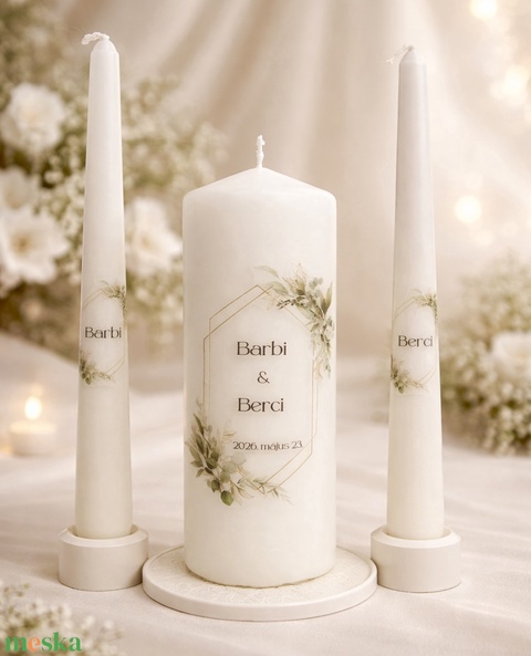 Esküvői gyertya szett 3 darabos - felirattal is