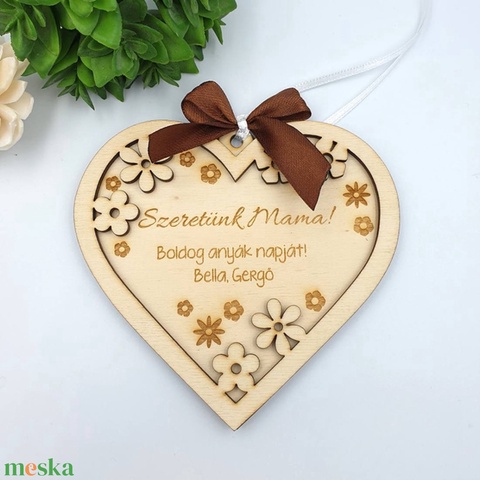 Anyák napi ajándék - Egyedi feliratos szív alakú gravírozott dísz
