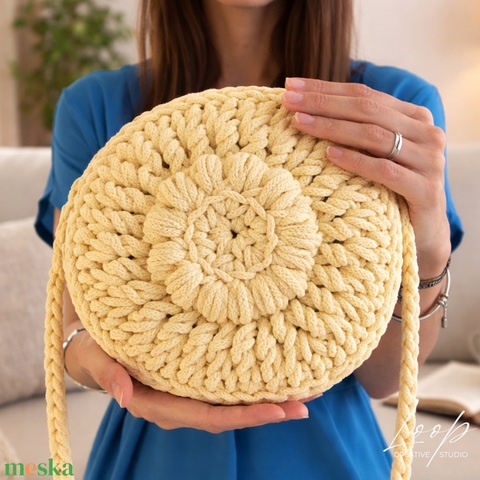 Flora horgolt női bohém táska – virág mintás crossbody táska, egyedi kézműves kézitáska