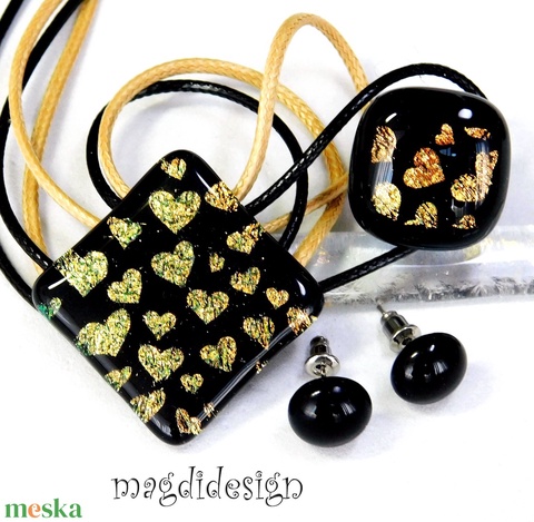Arany színjátszó szívecskés üvegékszer szett nyaklánc, fülbevaló - Ballgásra, Anyák napjára, születésnapra, névnapra