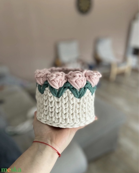 Horgolt anyáknapi tulipános tároló