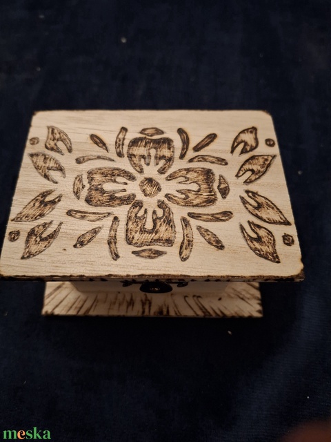 100% Kézi munka (Pirográfia): Felejtsd el a gépi lézert! Ezt a gazdag virágmintát saját kezűleg, pontról pontra álmodtam bele a fába. A tető antikolt szegélye és a középső motívum egysége adja meg azt az egyedi karaktert, amit csak a valódi kézművesség nyújt.