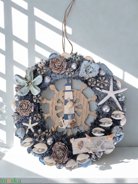 Tengerparti hangulatú ajtókopogtató / koszorú – kagylós, csillagos dísz