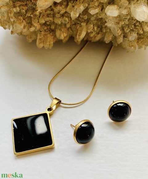 Sötétbarna szögletes medál bedugós fülbevalóval