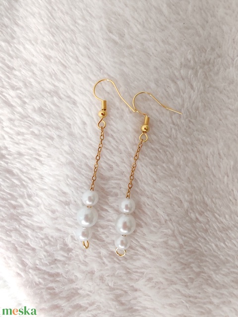 - Anyag/Összetevő akasztó, ugrókarikák, fehér akril gyöngy, lánc