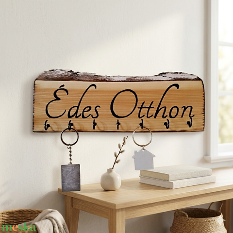 "Édes Otthon” – Rusztikus Kézműves Kulcstartó és Fali Dísz