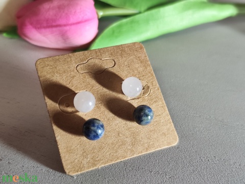 Ásványi Duó: Rózsakvarc és Szodalit Nemesacél Fülbevaló Szett