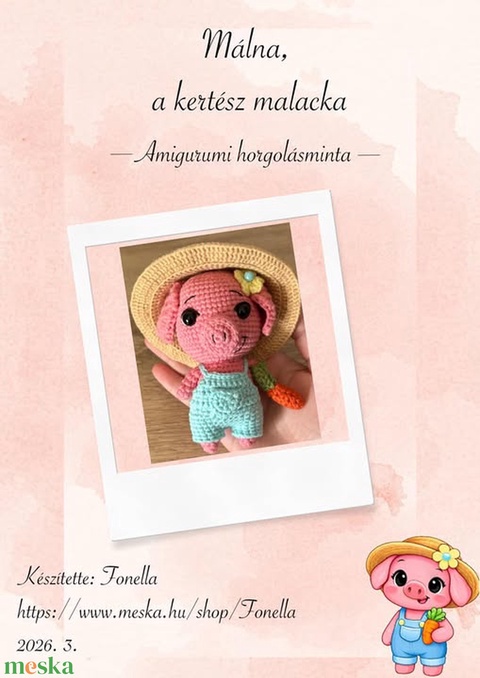 Málna, a kertész malacka - amigurumi horgolásminta